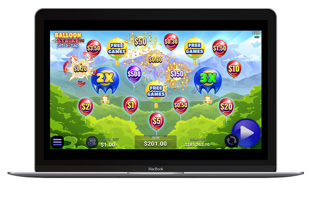 Balloon Strike UltraTap™ offers an exhilarating instant win adventure. Each play fires an arrow, and every direct hit on a balloon results in a win. Winning shots unveil 3 to 19 prizes on the screen, creating plentiful opportunities for exciting payouts. To heighten the thrill, the Multiplier Feature can randomly trigger on any win, applying x2 or x3 multipliers to dramatically boost the player’s rewards.
