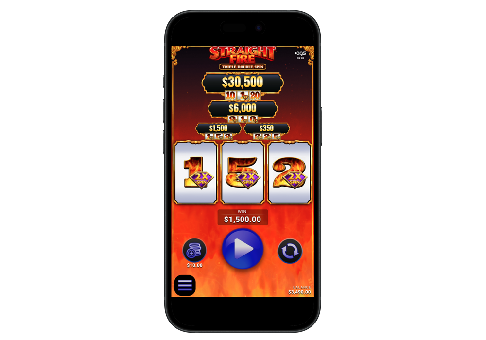 Introducing Straight Fire Triple Double Spin, a twist on traditional steppers that turns up the excitement with thrilling new features for an unforgettable experience. The Respin Feature brings three tiers of Spin Symbols to the reels, and whenever one lands, that reel spins again, with the max amount of respins per play being 2. A special nudge feature may also occur, where after the base game and any awarded respins have occurred, the game can nudge a non-winning reel to a fully visible number! These symbols also act as multipliers, and can combine to deliver payouts up to 9x! Spin Symbols also open the path to four jackpot tiers, each unlocked by landing specific jackpot symbol combinations for massive rewards.